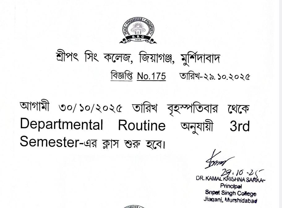 Notice Regarding Commencement of 3rd sem (NEP) Class